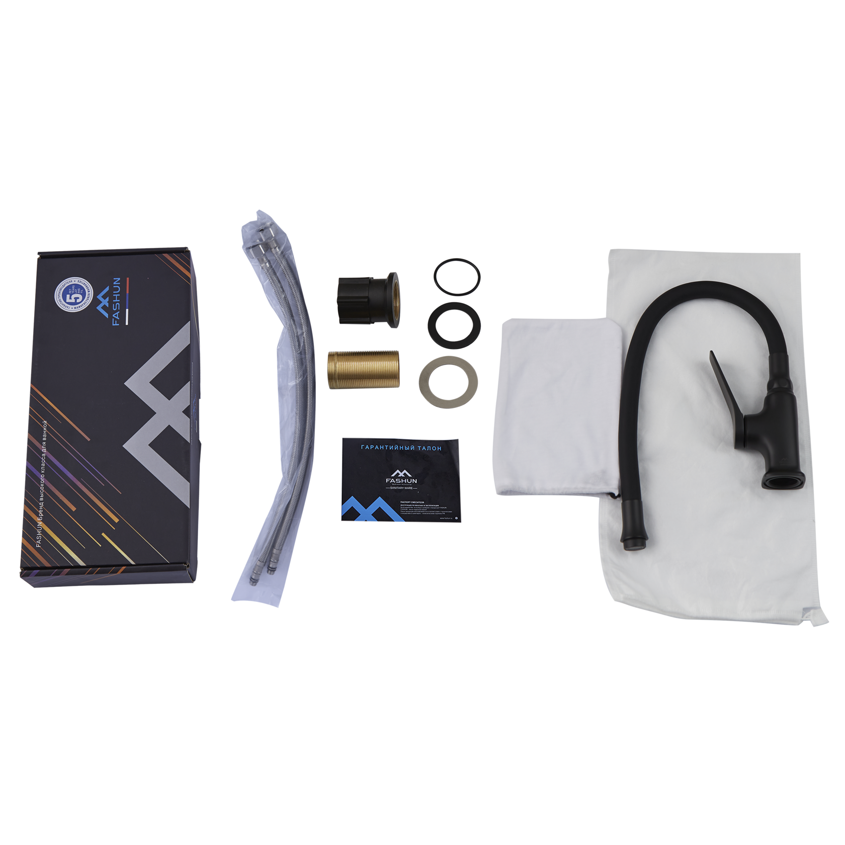 Смеситель для кухни Fashun с гибким изливом хром/чёрный (A4186-7A)