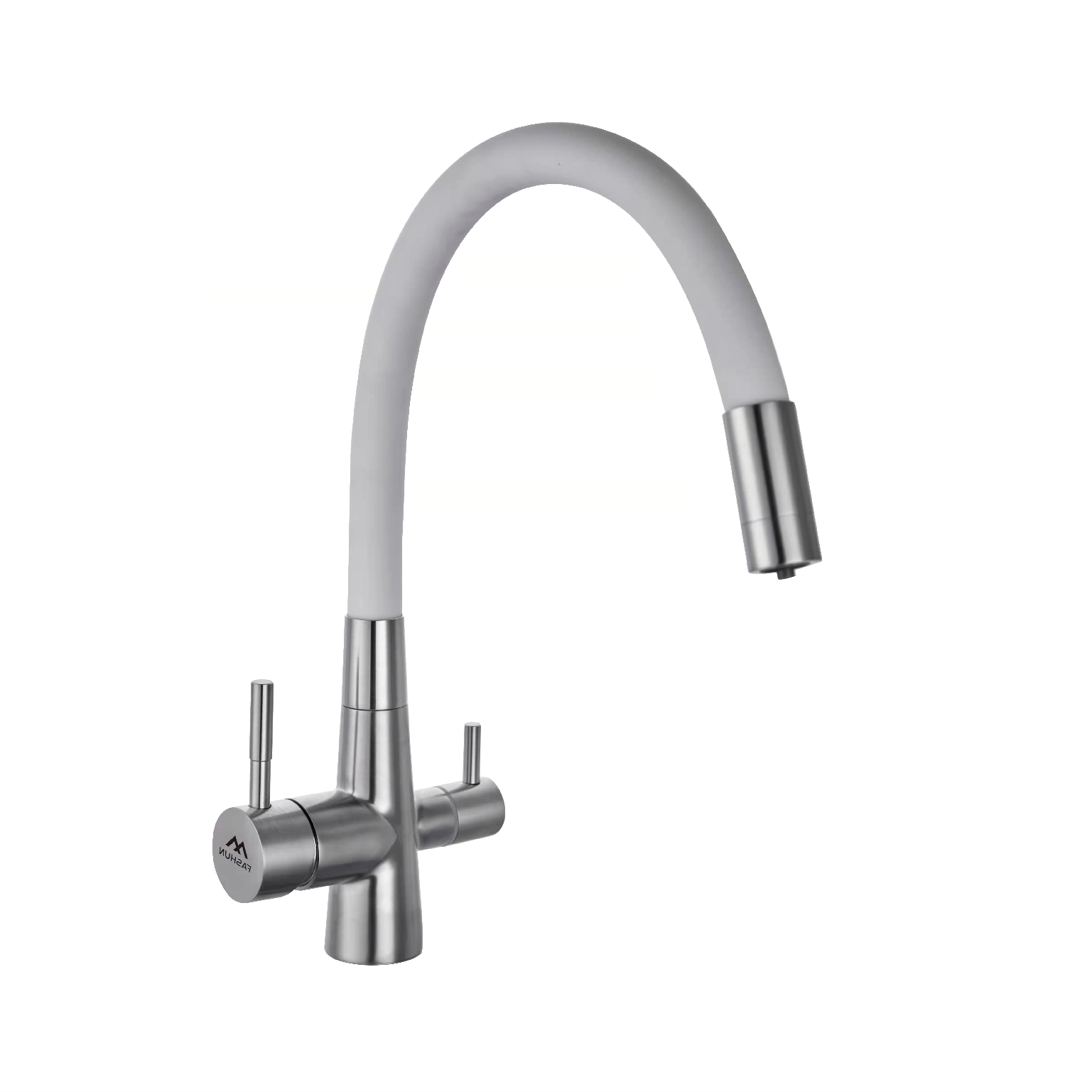 Смеситель для кухни Fashun с гибким изливом, с переключателем на фильтр с гибким изливом сатин/белый (A54029-8)