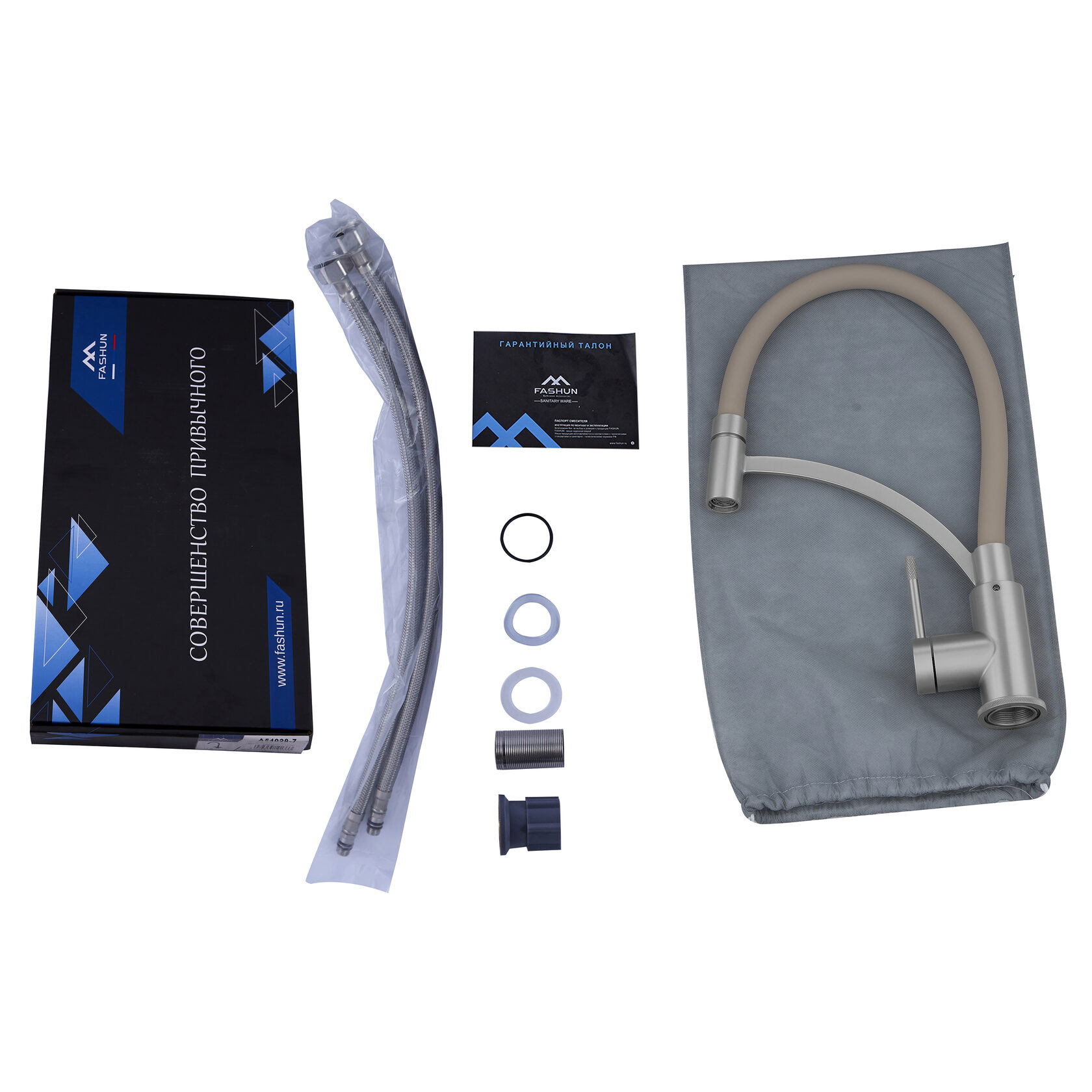 Смеситель для кухни Fashun с гибким изливом сатин (A54033)