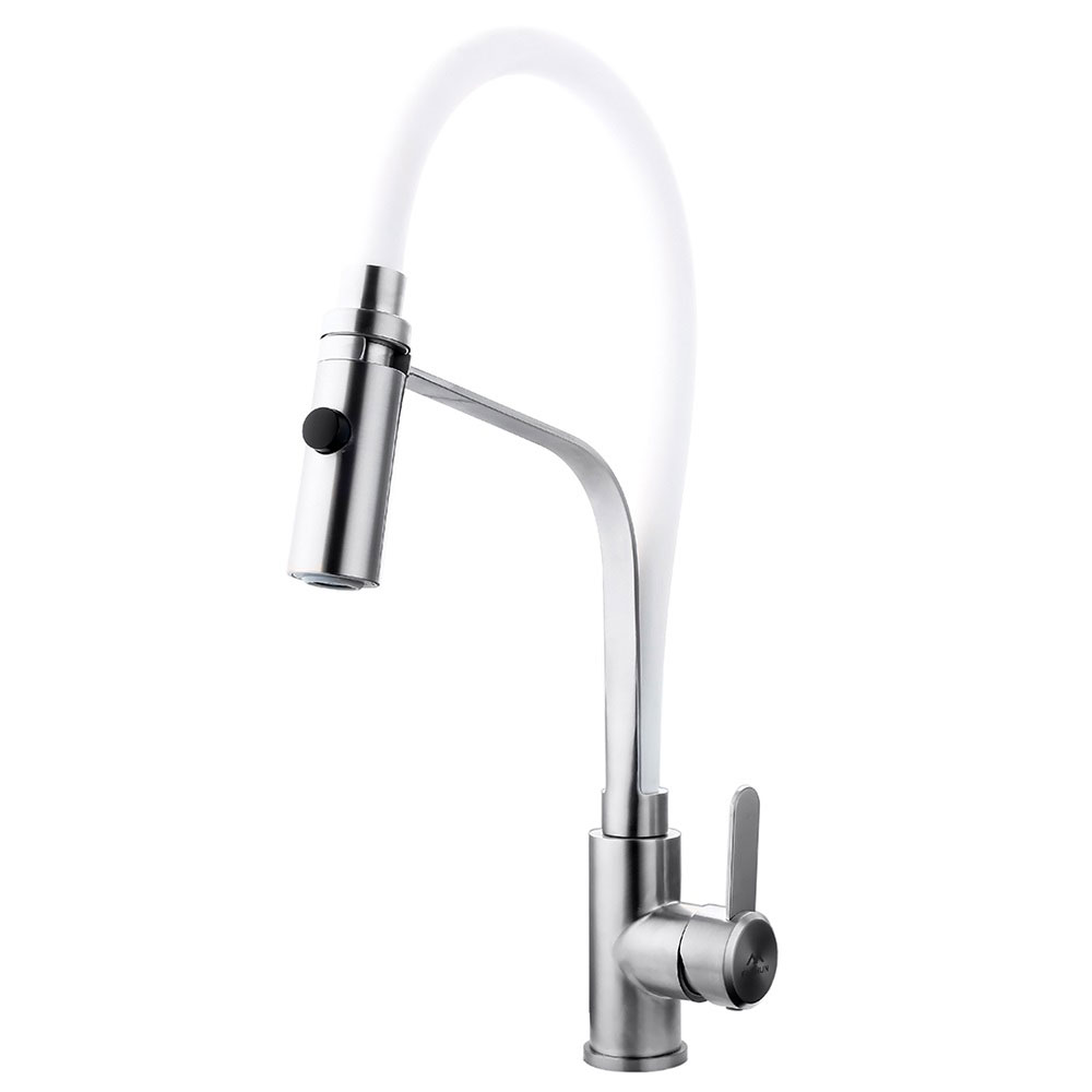 Смеситель для кухни Fashun с гибким изливом сатин/белый (A54112-8)