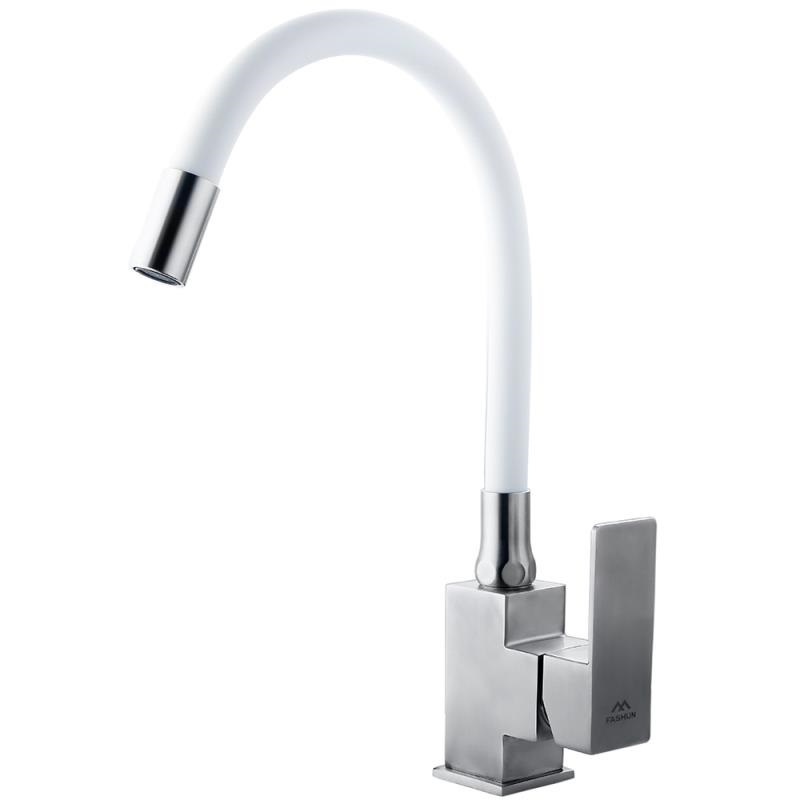 Смеситель для кухни Fashun с гибким изливом сатин/белый (A54302-8)