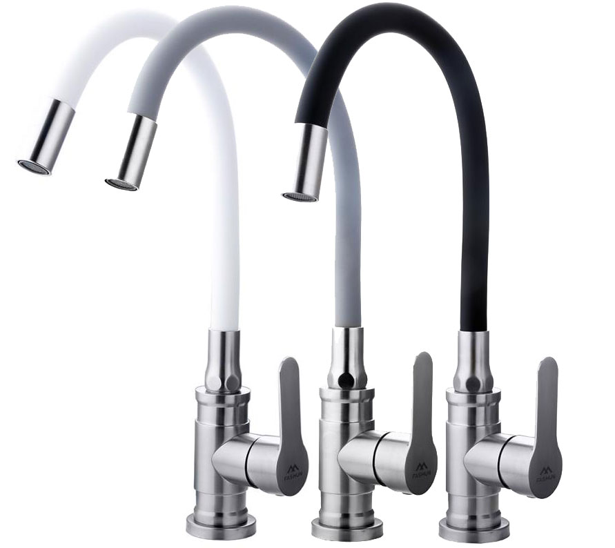 Смеситель для кухни Fashun с гибким изливом сатин/белый (A54401-8)