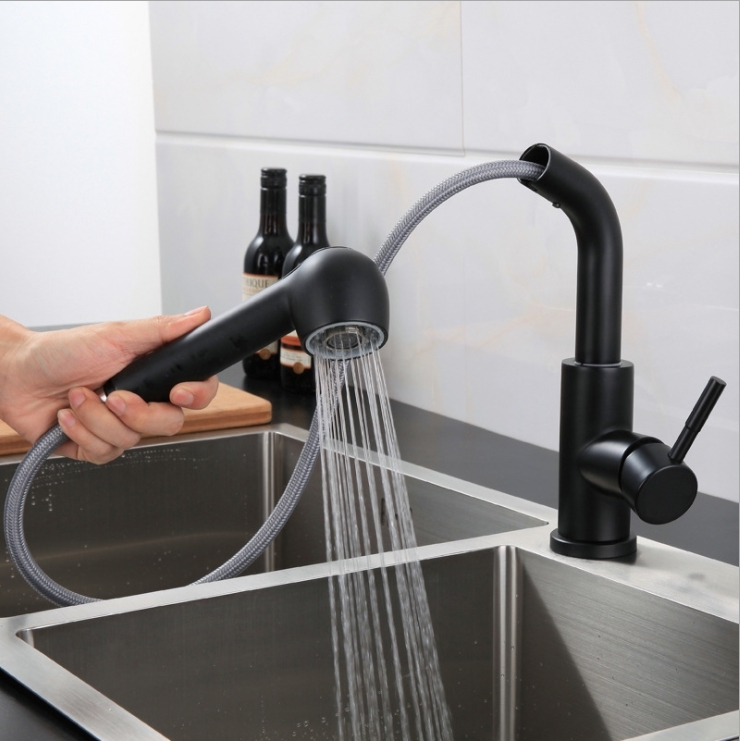 Смеситель для кухни Fashun с выдвижным изливом чёрный (A56009-7)