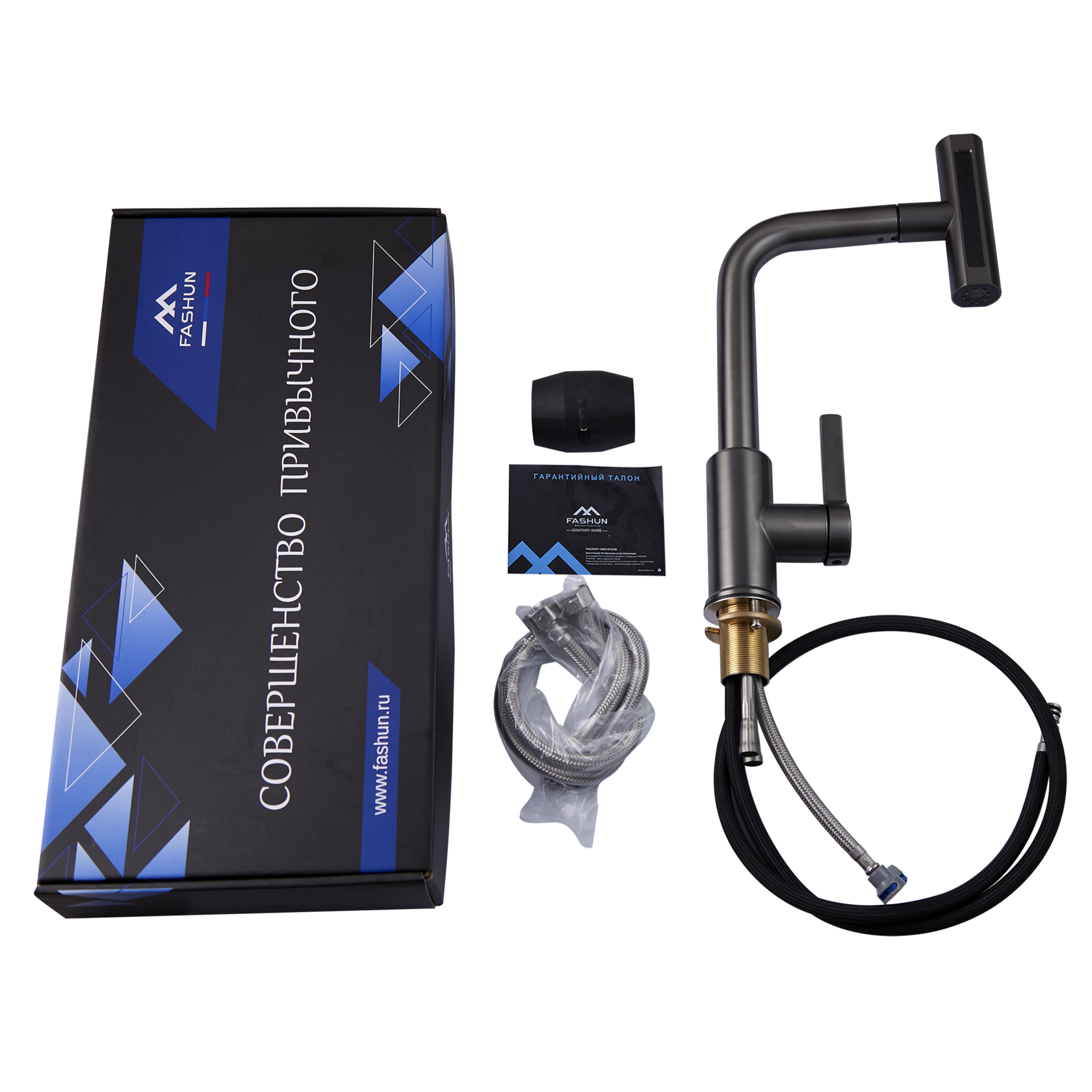 Смеситель для кухни Fashun с выдвижным изливом графит (A56131-17)