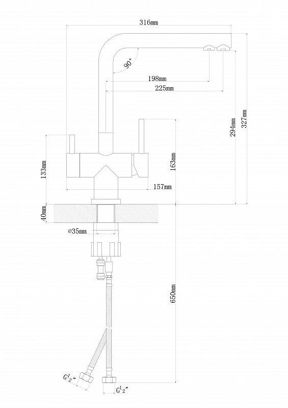 Состав поставки: смеситель, гибкая подводка, крепление, аэратор.
