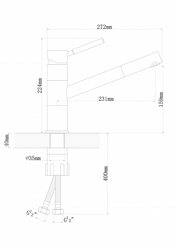 Состав поставки: смеситель, гибкая подводка, крепление, аэратор.