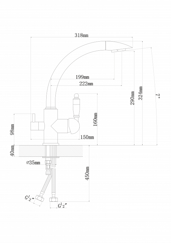 Состав поставки: смеситель, гибкая подводка, крепление, аэратор.