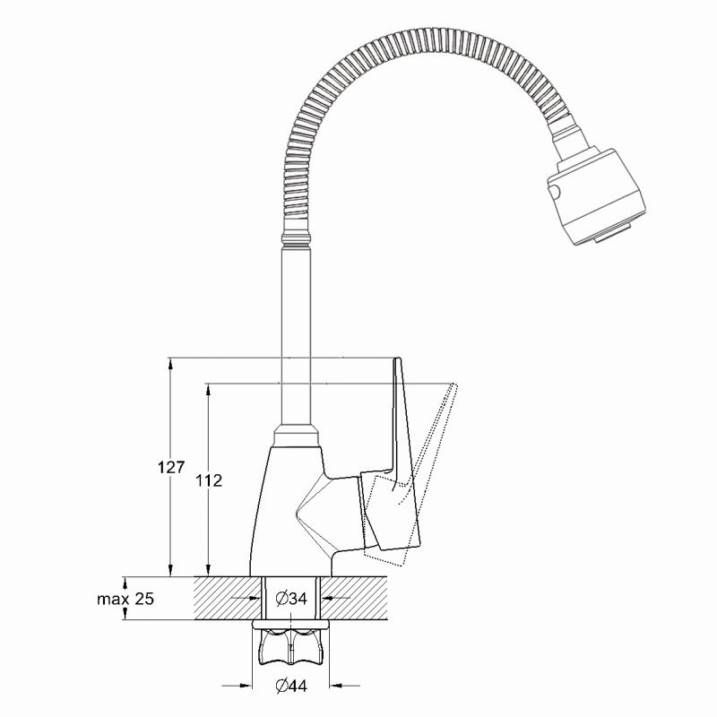 - 2-х функциональный пластиковый аэратор с функцией легкой очистки. Гибкий гофрированный излив.