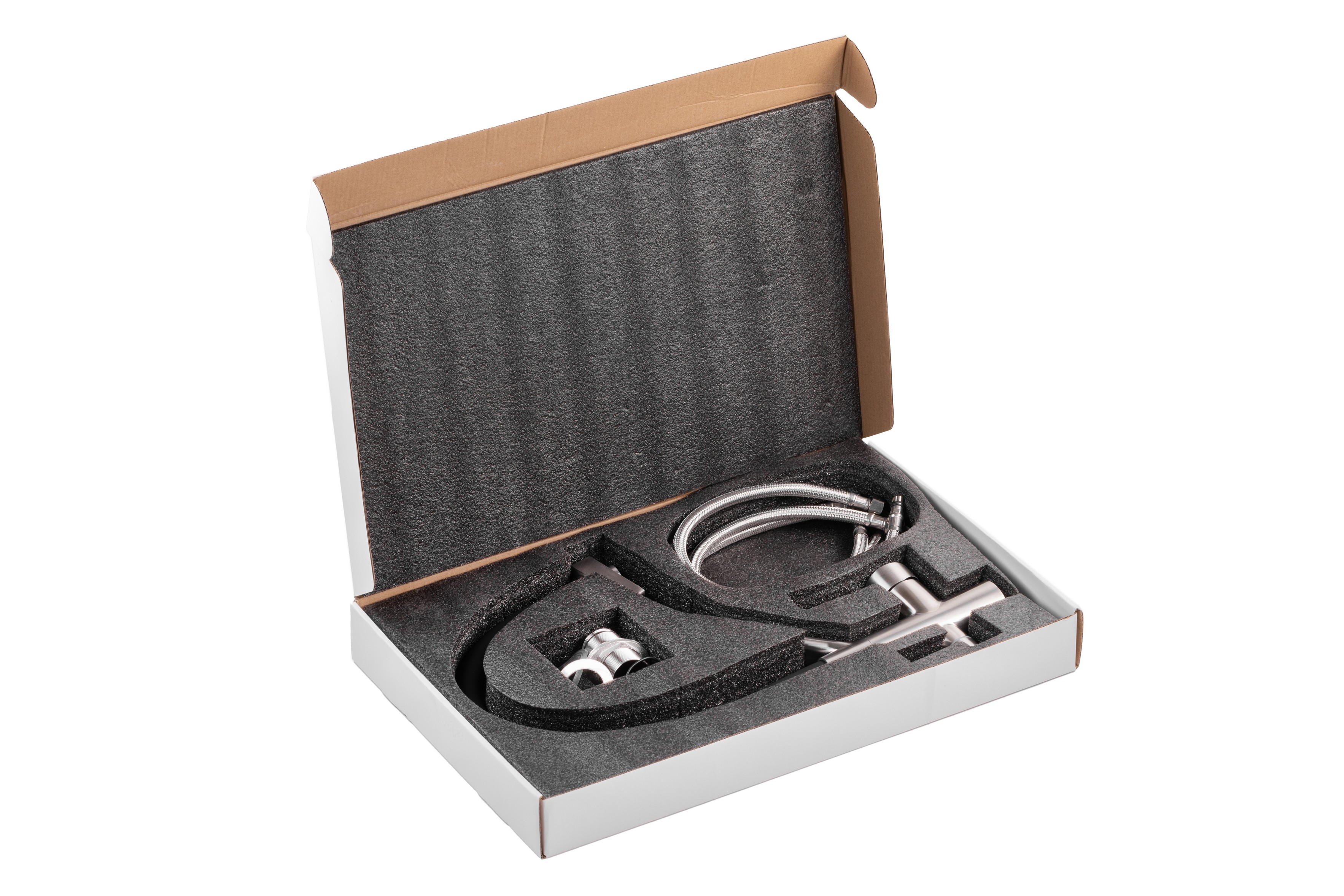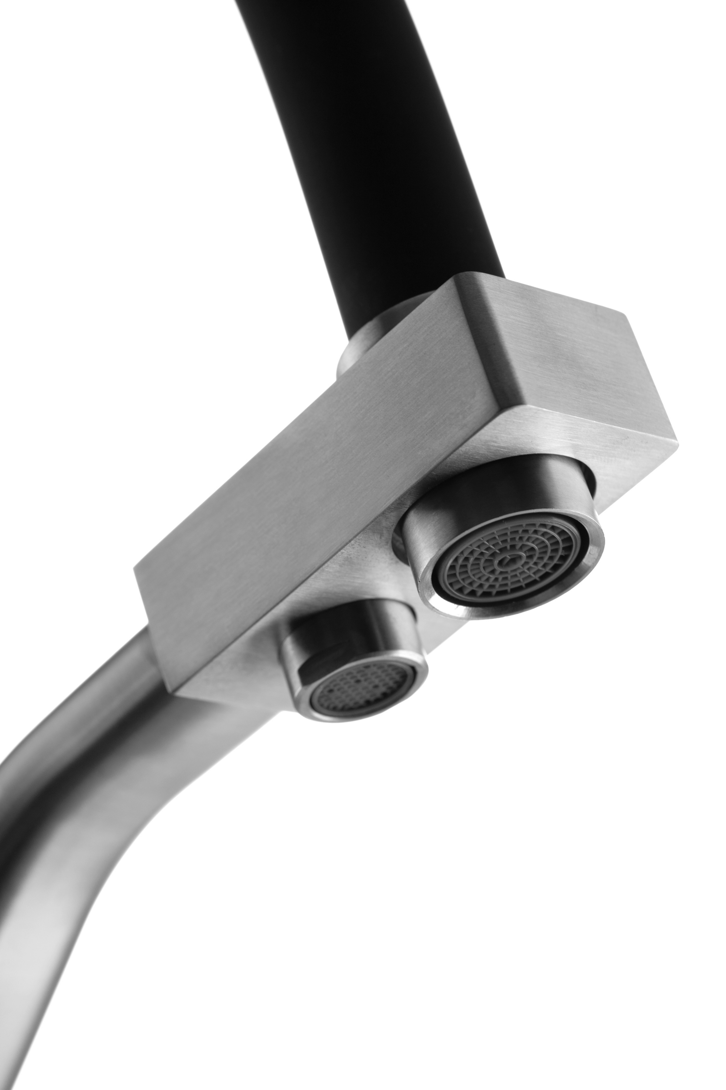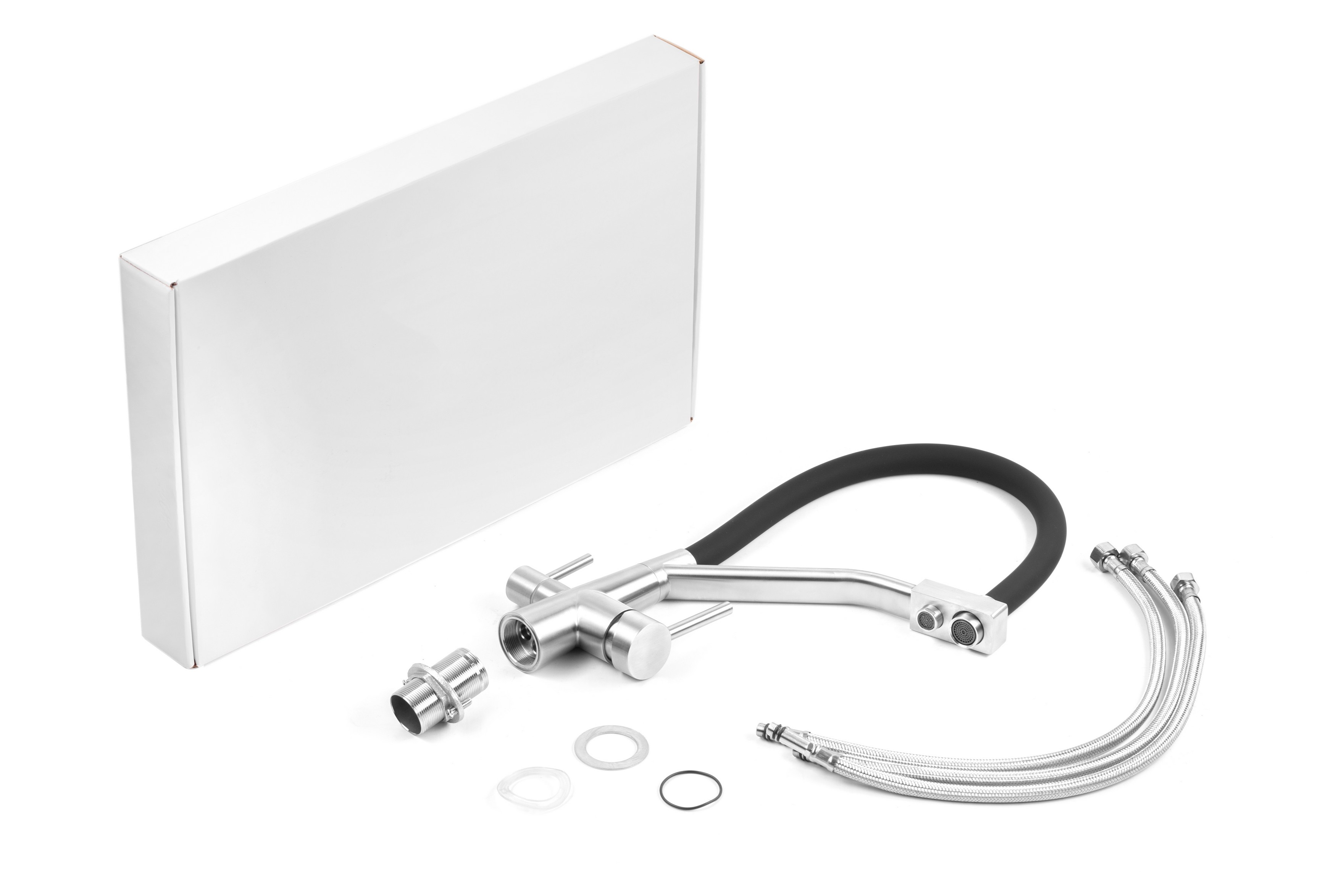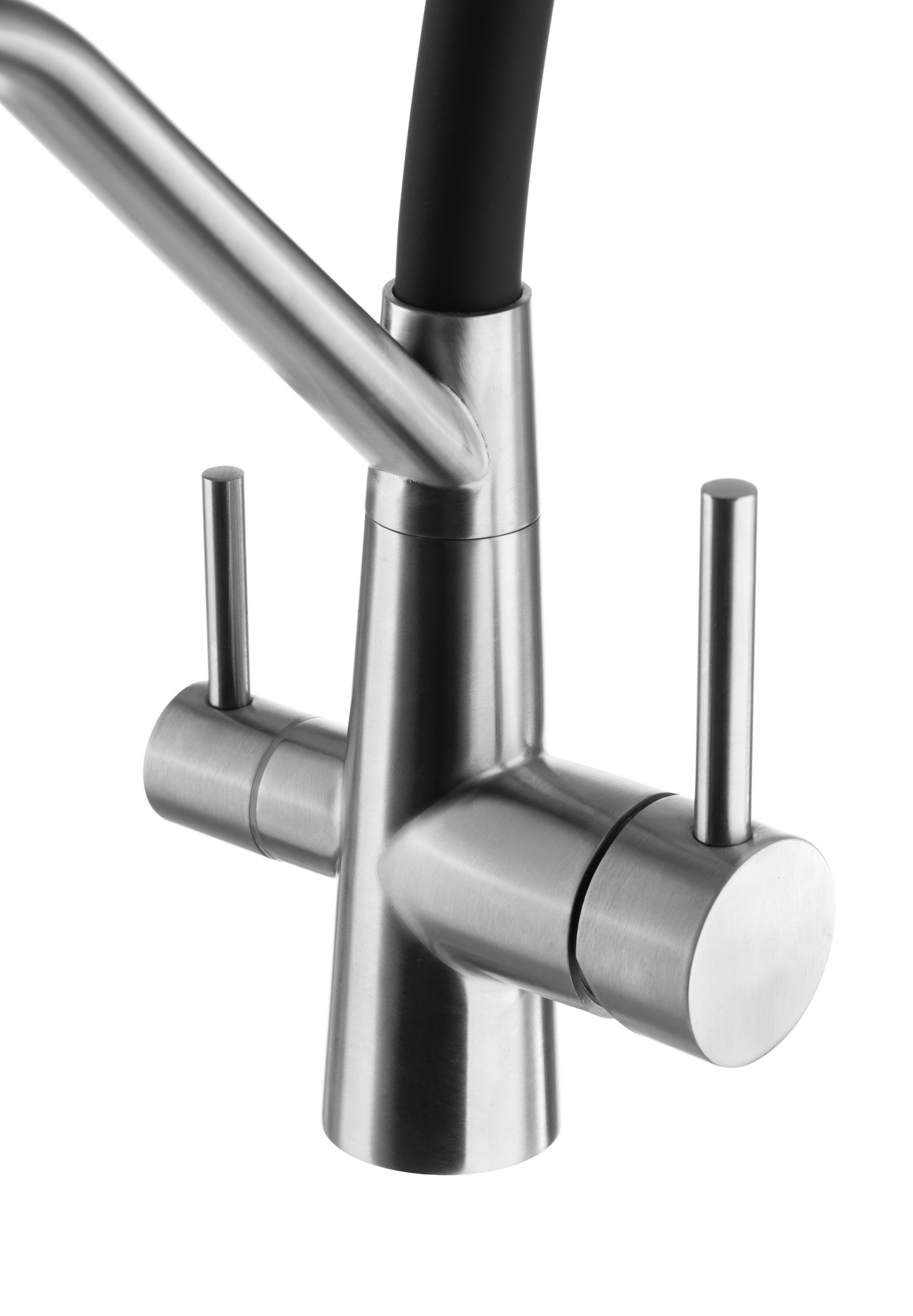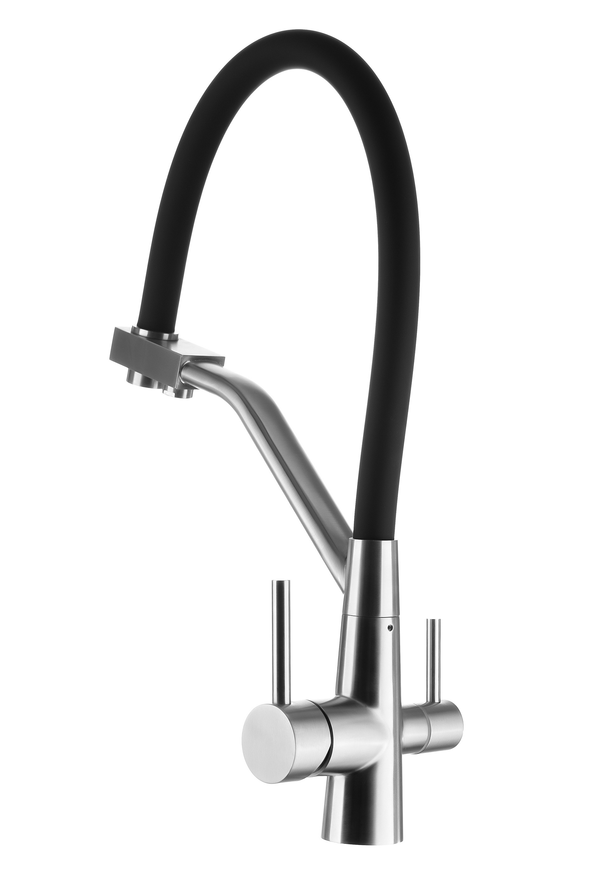 Конструкция смесителя позволяет получать как обычную водопроводную воду (холодную и горячую), так и очищенную воду из фильтра, благодаря чему нет необходимости устанавливать отдельный смеситель для фильтра и сверлить под него отверстие.