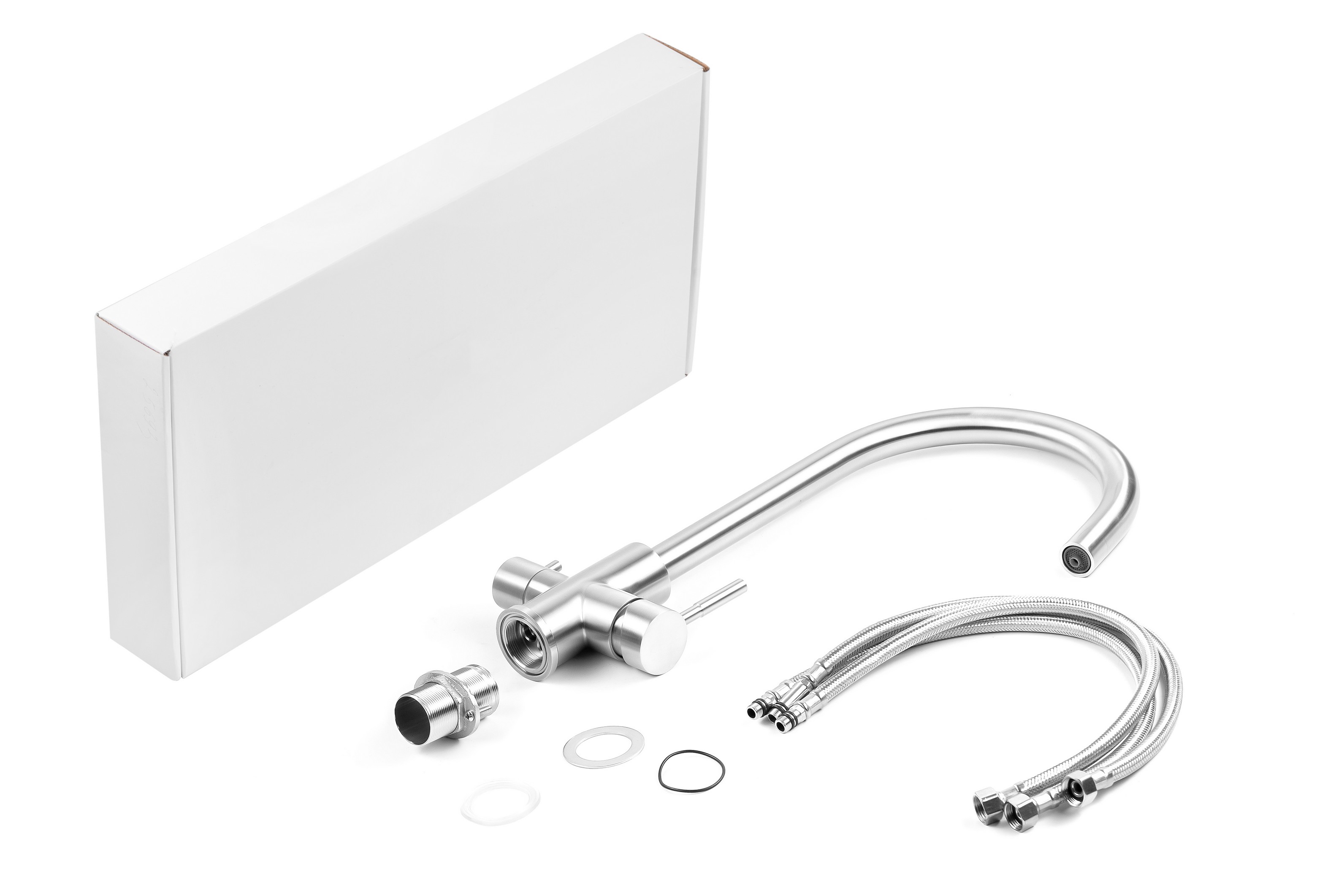 Конструкция смесителя позволяет получать как обычную водопроводную воду (холодную и горячую), так и очищенную воду из фильтра, благодаря чему нет необходимости устанавливать отдельный смеситель для фильтра и сверлить под него отверстие.