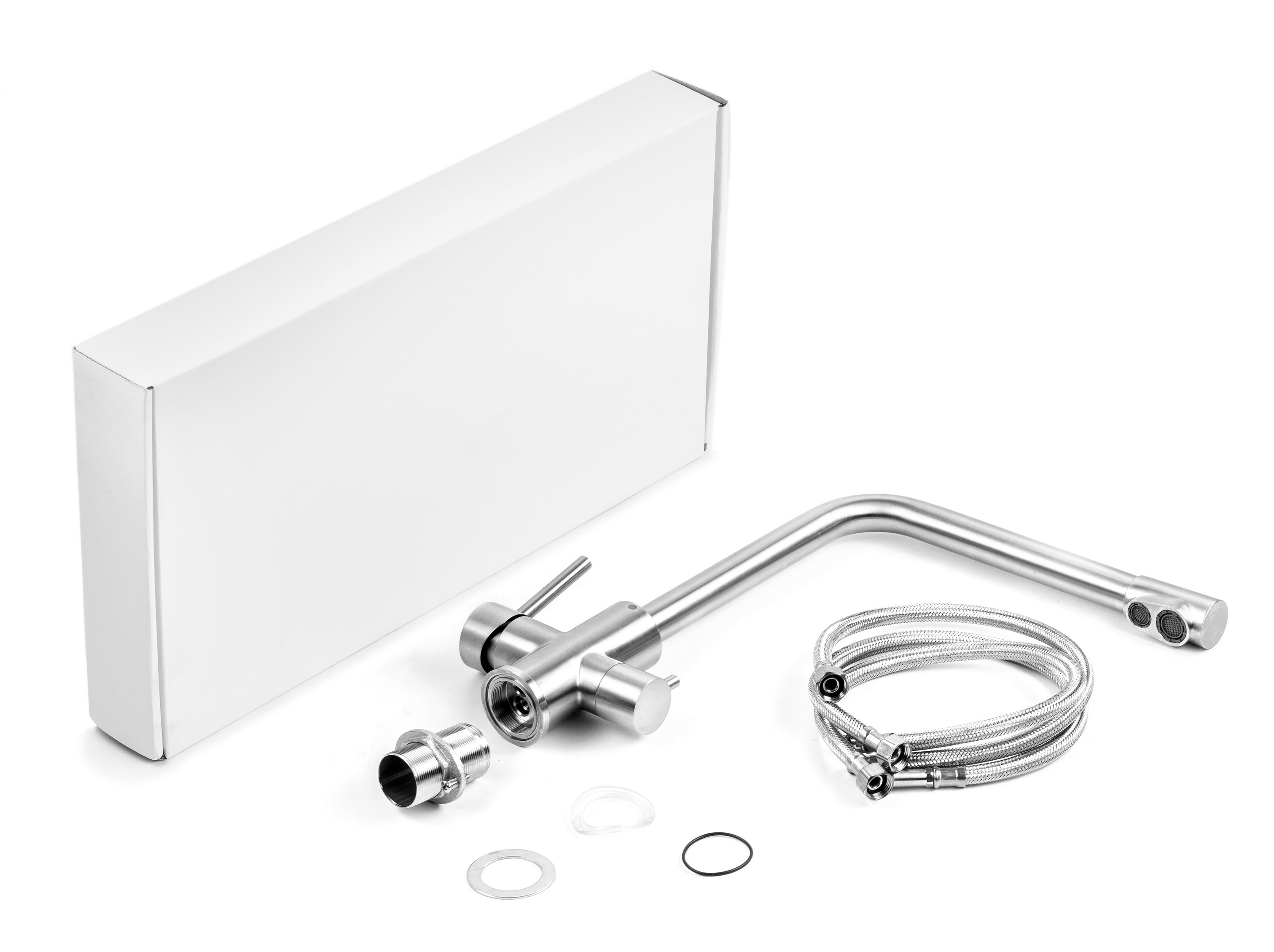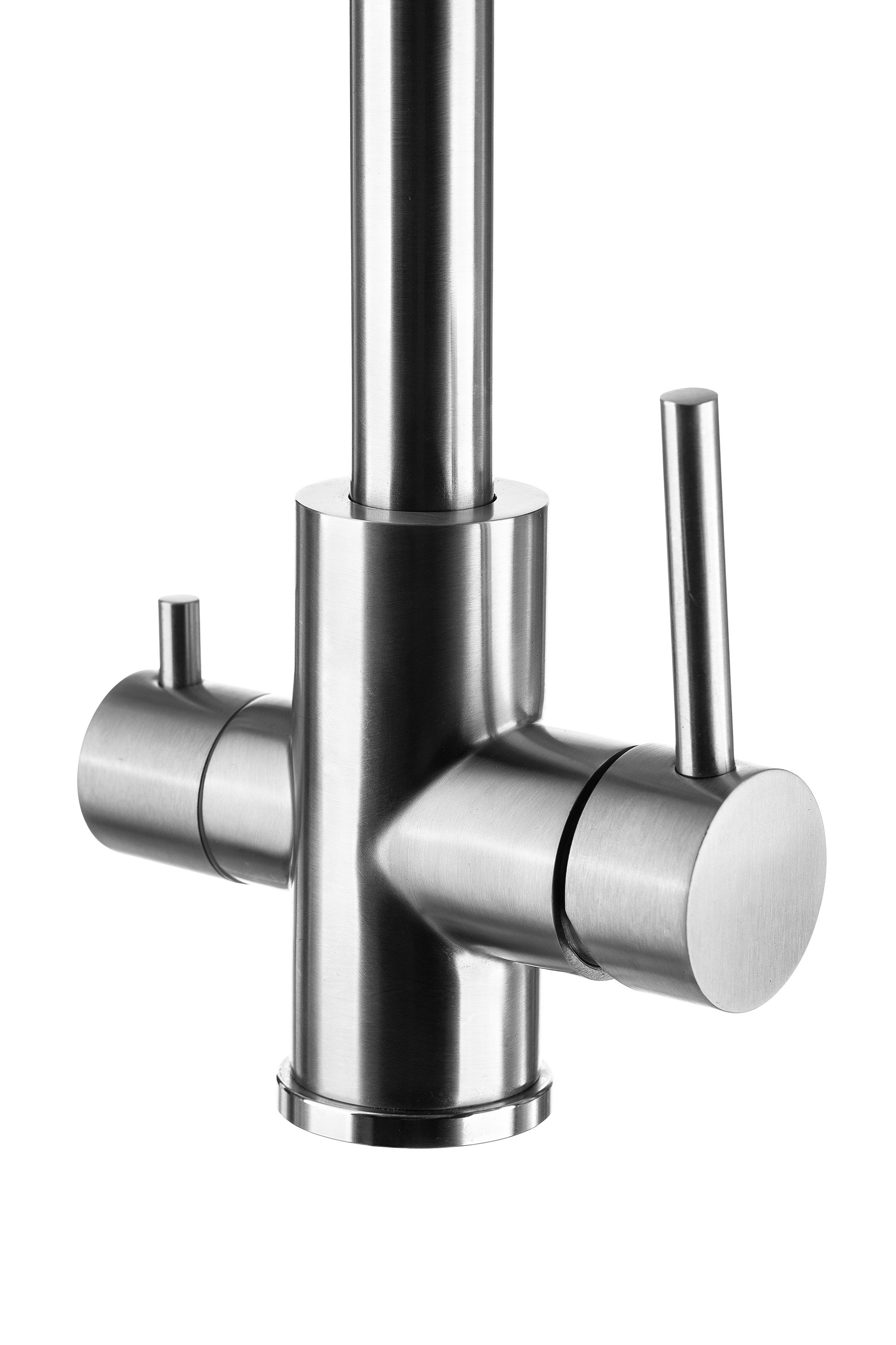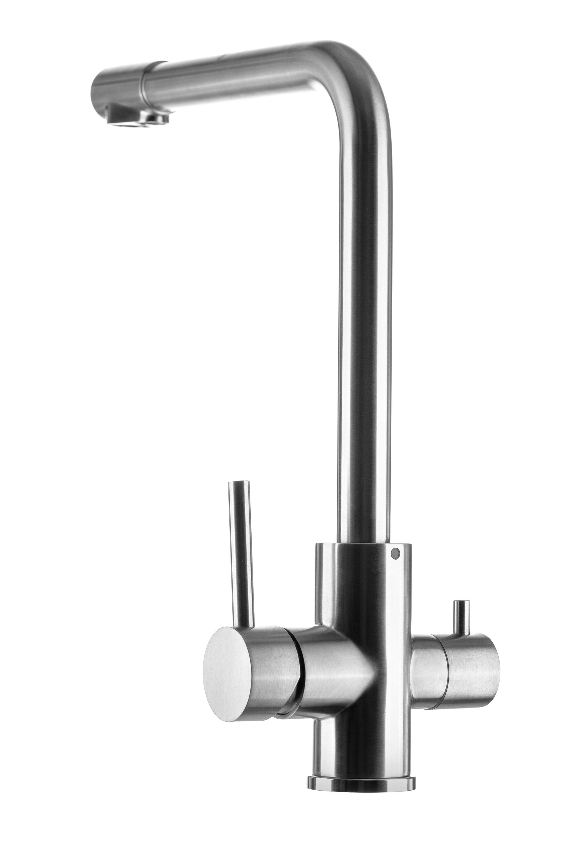 Конструкция смесителя позволяет получать как обычную водопроводную воду (холодную и горячую), так и очищенную воду из фильтра, благодаря чему нет необходимости устанавливать отдельный смеситель для фильтра и сверлить под него отверстие.