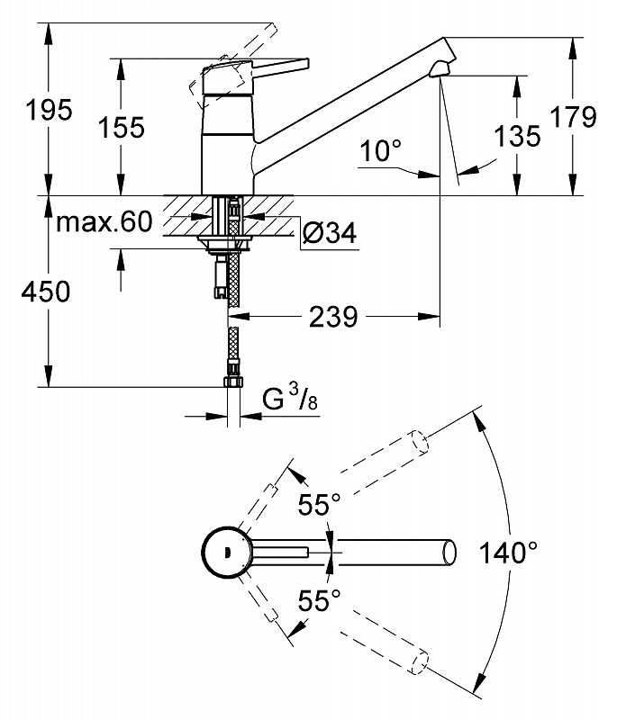 смеситель для кухни, гибкая подводкаХарактеристики