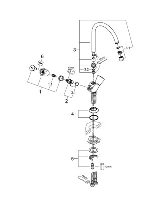 Состав поставки: смеситель, крепления, аэратор, гибкая подводка