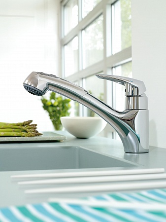 Однорычажный смеситель из серии Grohe Eurodisc отличается высокой функциональностью. Выдвижной излив с аэратором, насыщающим капли воды воздухом, облегчает не только мытье посуды, но и наполнение объемных емкостей и уборку мойки. Переключатель на лейке меняет стандартный режим струи на душевой. Фирменная технология GROHE SilkMove® гарантирует, что легкость и точность хода рычага смесителя сохранятся в течение всего срока эксплуатации. Настраиваемая регулировка расхода воды поможет сэкономить ценный природный ресурс, а также сократить затраты на коммунальные услуги. Литой корпус смесителя изготовлен из латуни – материала долговечного и стойкого к воздействию коррозии. Прочностные характеристики металла усилены фирменным покрытием GROHE StarLight® – оно не боится царапин и не тускнеет со временем.