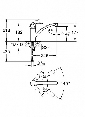Однорычажный смеситель из обновленной серии Grohe Eurosmart New выполнен в минималистичном дизайне. Радиус поворотного излива равен 140°. Это дает широкие возможности для работы на кухне, например, для очищения труднодоступных мест, наполнения емкостей водой, ополаскивания фруктов. Корпус смесителя изготовлен из антикоррозионной латуни с фирменным покрытием Grohe StarLight. Хромированная поверхность не тускнеет со временем и устойчива к появлению царапин. Инновационная технология Grohe SilkMove гарантирует, что плавный и точный ход рычага сохранится на протяжении всего срока службы изделия. Водосберегающий механизм Grohe EcoJoy уменьшает расход ресурсов до 5,7 л/мин.