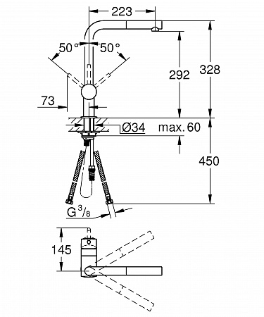 Благодаря выдвижному изливу мытье глубокой посуды, овощей и фруктов станет намного быстрее и проще. Такую мобильность оценит каждая хозяйка. Фирменная технология Grohe SilkMove® способствует плавности хода рычага. Благодаря аэратору-насадке капли воды смешиваются с воздухом, что минимизирует расход воды и способствует мягкости струи.