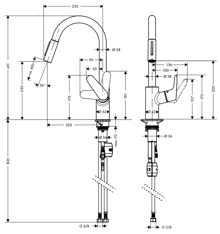Смеситель для кухни Hansgrohe Focus с выдвижным изливом (31815000)
