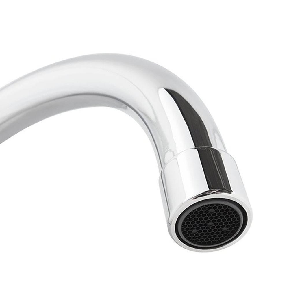 Смеситель для кухни, однозахватный, латунь, никель-хромовое покрытие, цвет - хром, керамический картридж 25 мм, пластиковый аэратор. В комплекте: гибкая подводка, крепёж. Упаковка: коробка, микрогофрокартон, индивид. мешок.