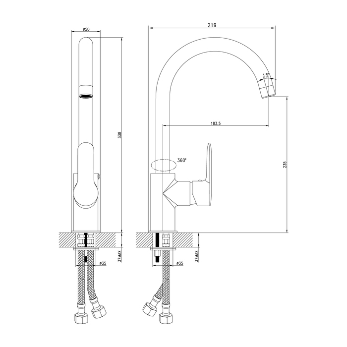 - Смеситель для кухни IDDIS изготовлен из высококачественной первичной латуни, прочной, безопасной и стойкой к коррозии.