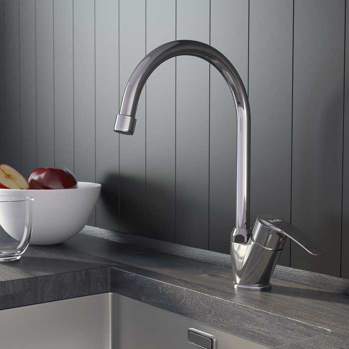 - Однозахватный смеситель для кухни Ray имеет универсальный дизайн и подойдет для различных вариантов интерьерных решений. Благодаря поворотному изливу пользоваться им удобно на любой кухонной мойке. Может быть установлен как на мойку, так и на столешницу. Высота излива – 307 мм.