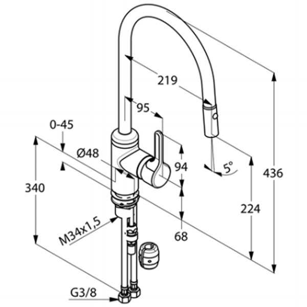 Автоматическое переключение: душевая/нормальная струя.