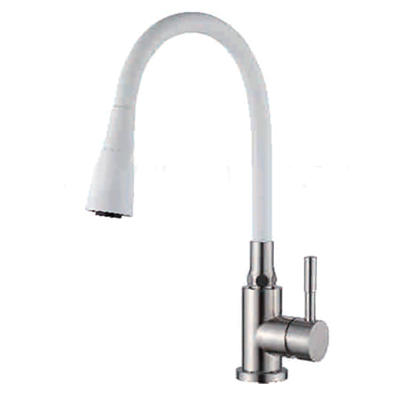 Смеситель для кухни Ledeme белый, гибкий излив (L74199-3)