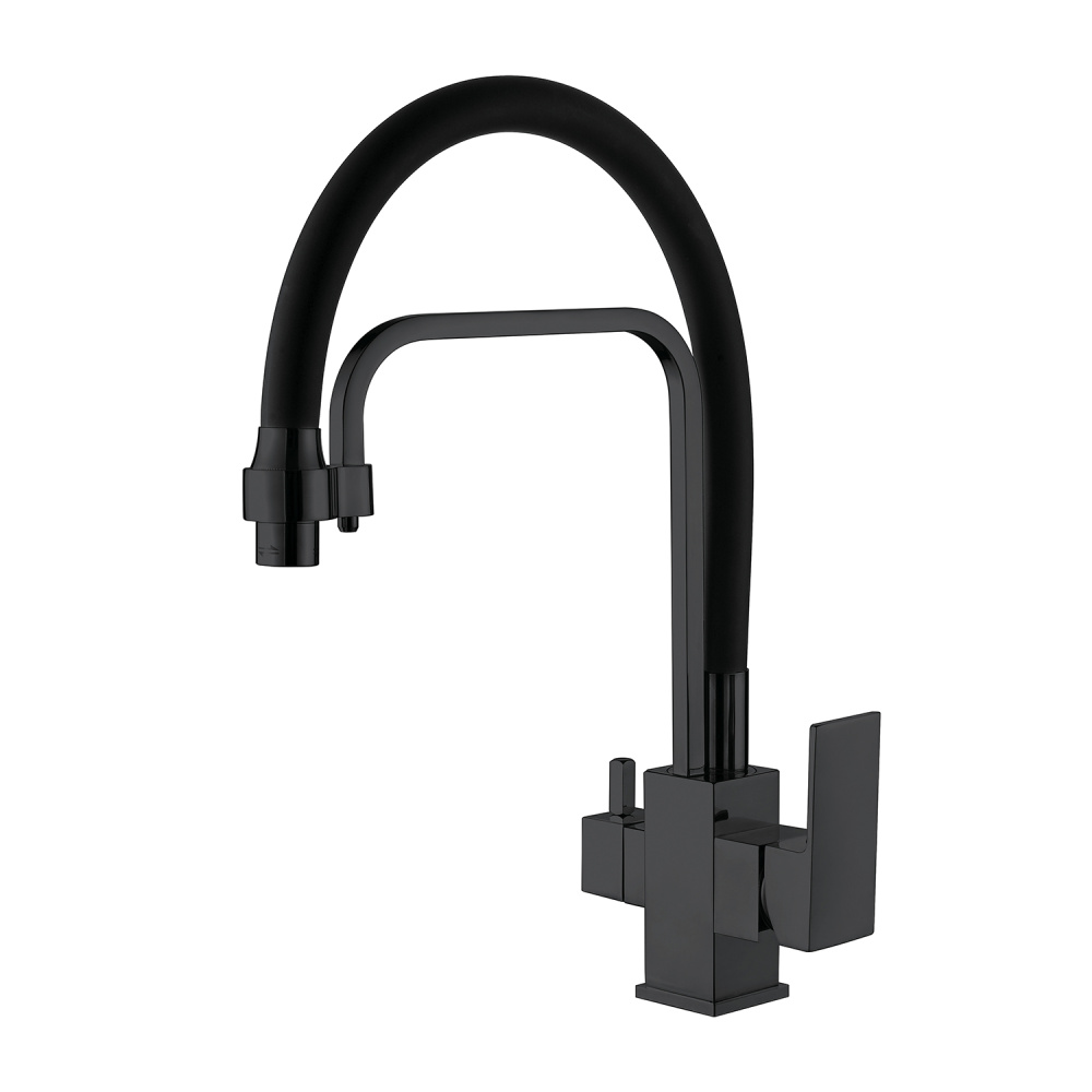 Смеситель для кухни Ledeme черный, с выходом для питьевой воды (L4655B-2)