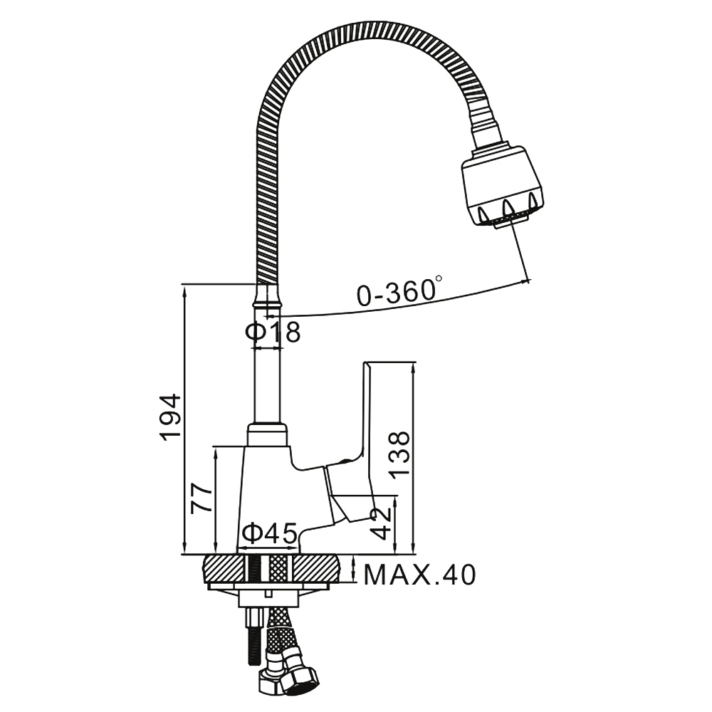 Состав поставки: смеситель, гибкая подводка