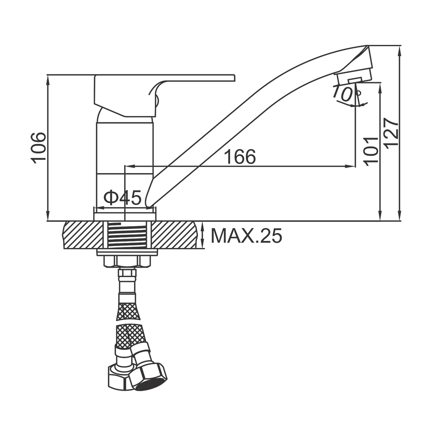Состав поставки: смеситель, гибкая подводка