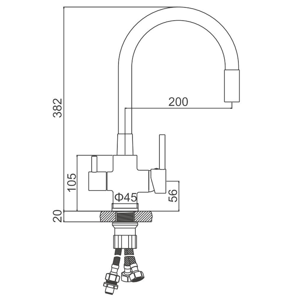 Состав поставки: смеситель, гибкая подводка, с выходом для питьевой воды
