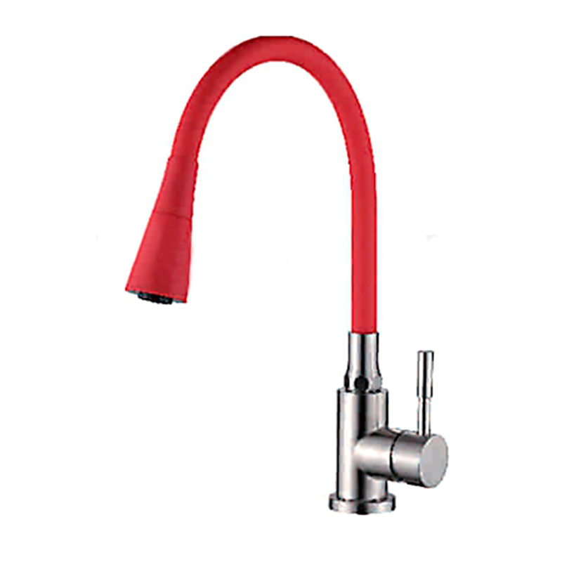Смеситель для кухни Ledeme красный, гибкий излив (L74199-1)