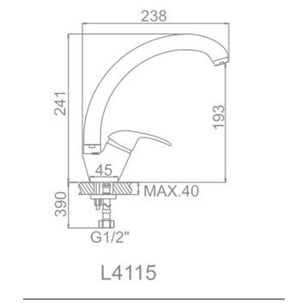 Смеситель однорычажный, с поворотным изливом, крепление на кухонной мойке с помощью шпилек.
