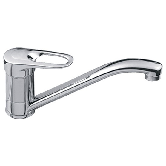 Смеситель однорычажный, с поворотным изливом, крепление на кухонной мойке с помощью шпилек.
