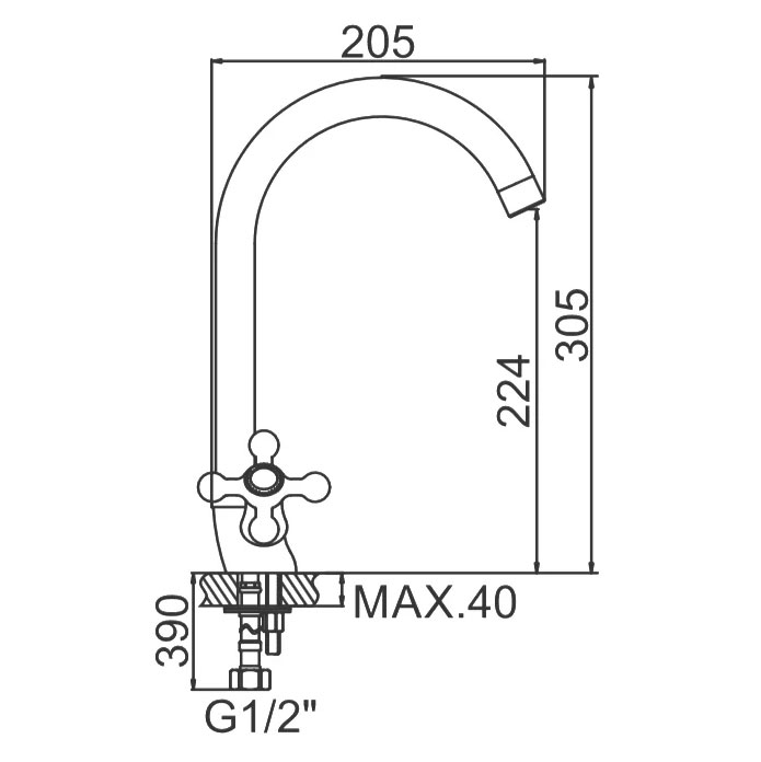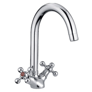 Смешивание горячей и холодной воды происходит с помощью двух металлических крестообразных маховиков и керамических кран-букс.