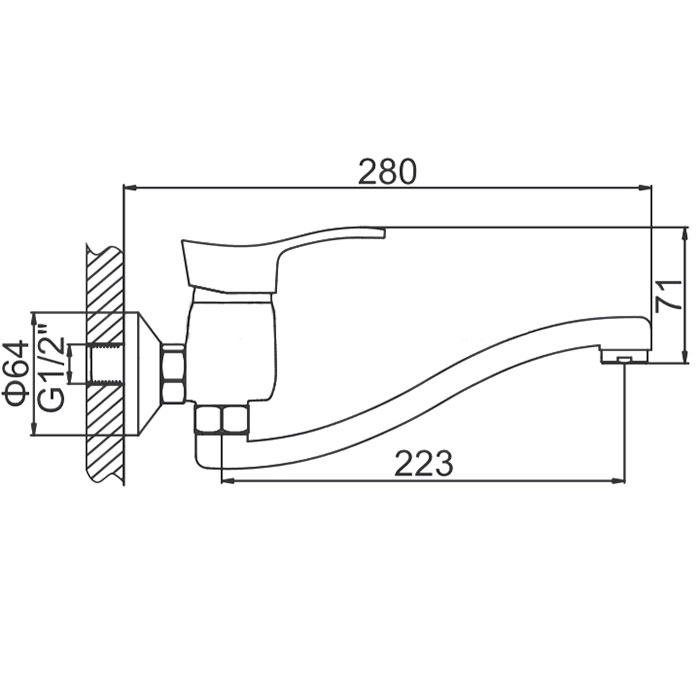 Смеситель настенный LEDEME картридж д.35мм излив L25S силумин L4614-В в коллекции Н14 силумин с зеркально-гладким хромовым покрытием успешно сочетаются строгий лаконизм простых форм деталей, формируемого плоским изливом.