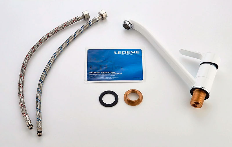 Смеситель изготовлен из высококачественной латуни с белым хромированным покрытием, которое делает смеситель Ledeme устойчивым к механическим повреждениям и загрязнениям, что позволяет надолго сохранить превосходный внешний вид изделия.