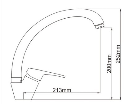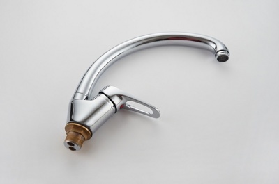 Смеситель однорычажный, с поворотным изливом, крепление на кухонной мойке с помощью затяжной гайки.