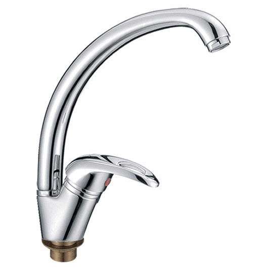 Смеситель однорычажный, с поворотным изливом, крепление на кухонной мойке с помощью обжимной гайки.