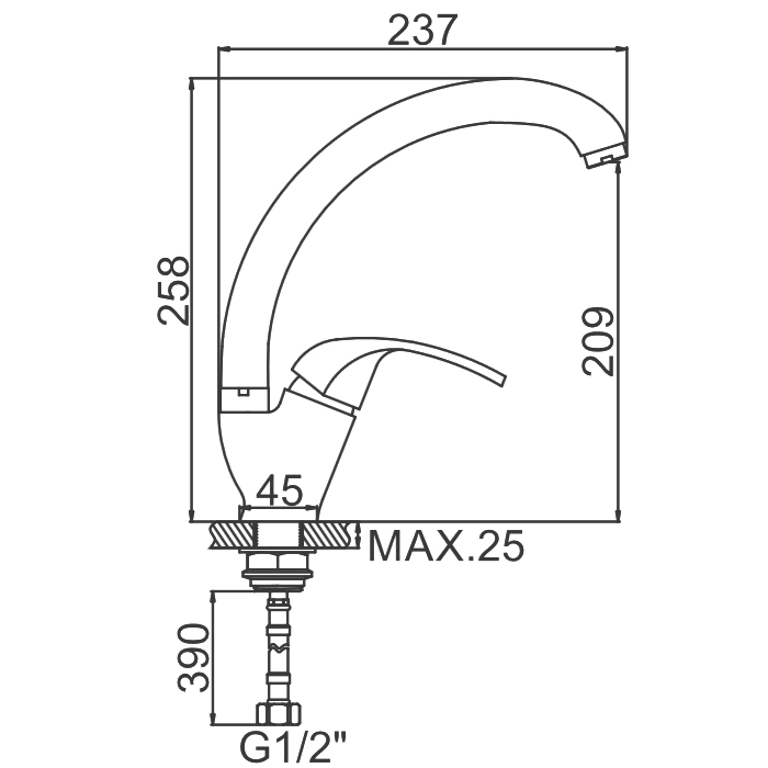 Удобная эргономичная ручка смесителя цвета «хром» имеют форму, удобную для захвата ладонью и значительные размеры, что позволяет уменьшить усилия, необходимые для изменения температуры и напора воды.