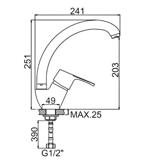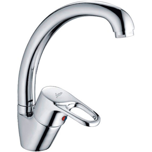 Смеситель однорычажный, с поворотным изливом, крепление на кухонной мойке с помощью шпилек.