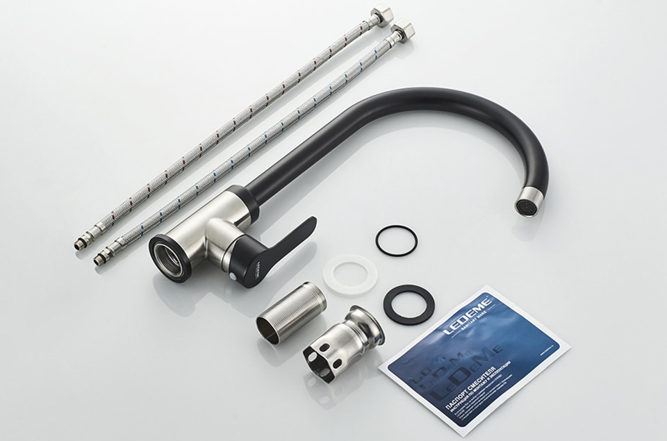 Смеситель LEDEME L74105B предназначен для использования на кухне, изготовлен из нержавеющей стали с черным сатиновым покрытием. Смешивание горячей и холодной воды происходит с помощью рычага и керамического картриджа диаметром 35 мм. Крепление на кухонной мойке с помощью гайки.