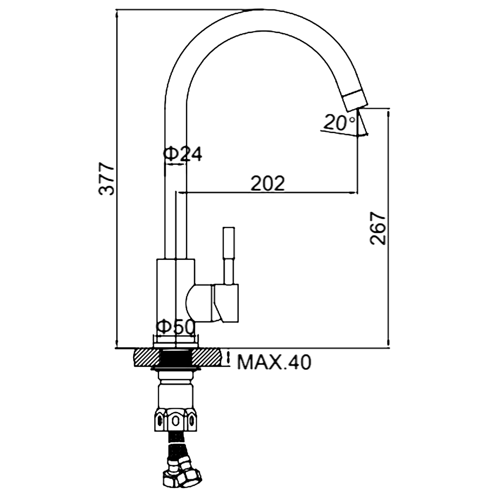 Состав поставки: смеситель, гибкая подводка