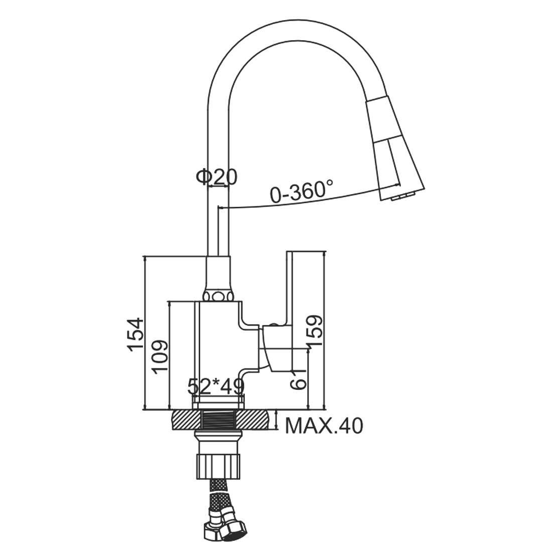 Состав поставки: смеситель, гибкая подводка