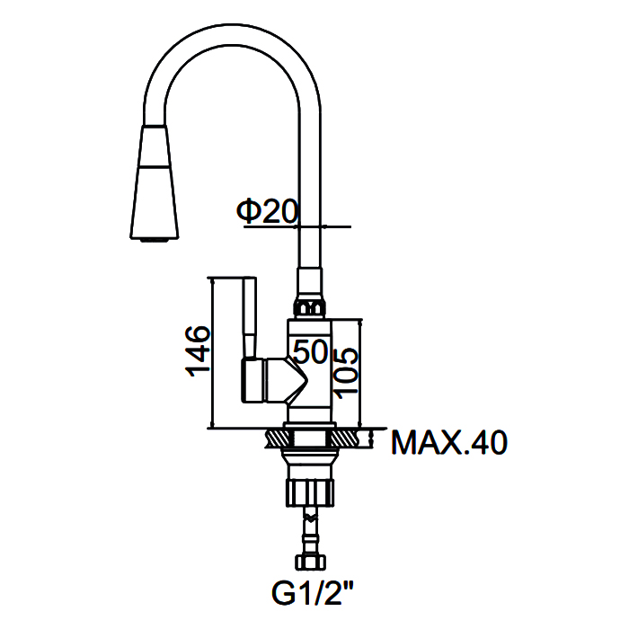 Смешивание и подача воды происходит с помощью керамического картриджа диаметром 25 мм и металлической ручки. В комплекте подводка для подключения воды 1/2" и необходимые крепления.