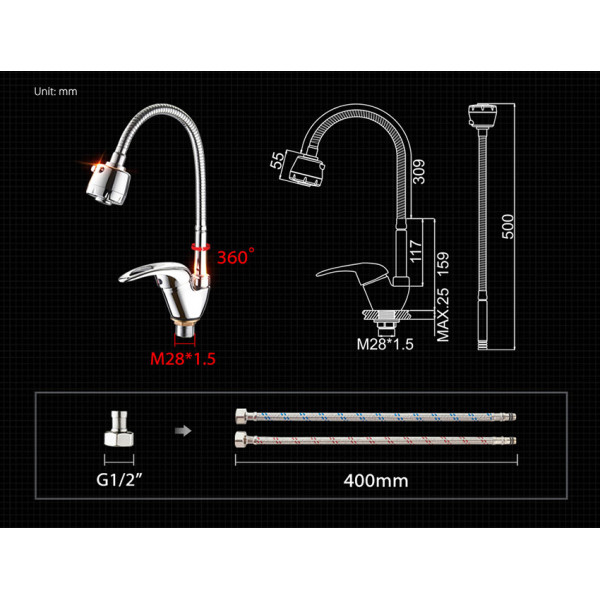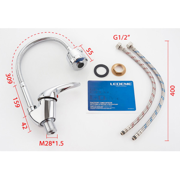 Смеситель кухня LEDEME картридж д.40мм с гибким изливом, с гайкой силумин L4302-B смесители производителя Ledeme - в комплект входят аксессуары и гибкая подводка, запорный клапан состоит из картриджа с керамическими пластинами, что значительно увеличивает их срок службы.