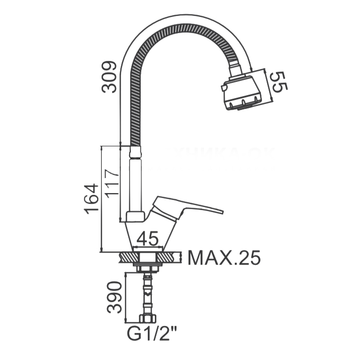 Смеситель для кухни LEDEME L4313 из серии смесителей H13 изготовлен из латуни с хромированным покрытием, устанавливется на кухонную мойку со стандартным отверстием под смеситель или на столешницу с помощью гайки.