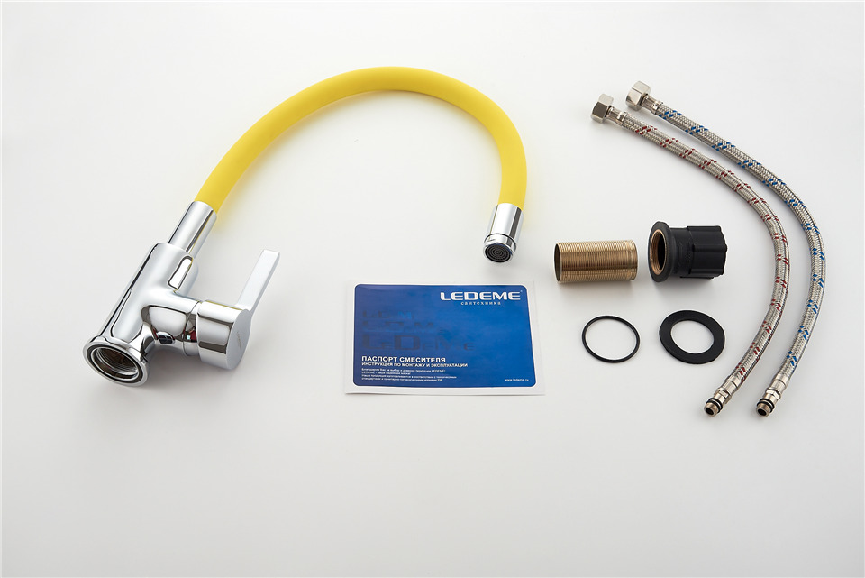 Смеситель кухня LEDEME гибкий шланг в коллекции смесителей из серии силиконовых смесителей с цветным покрытием успешно сочетаются с современным дизайном с применением необычных форм деталей.