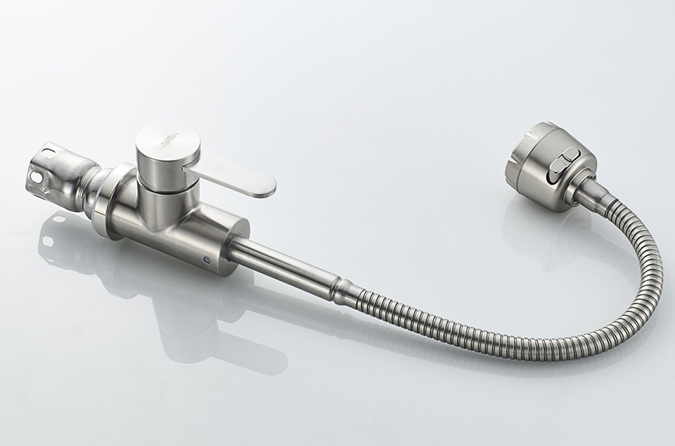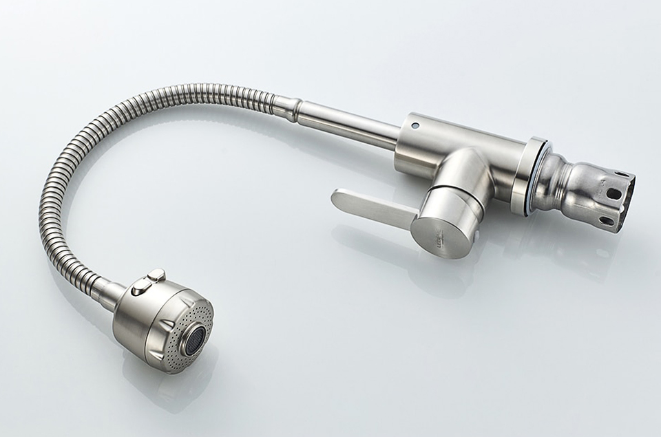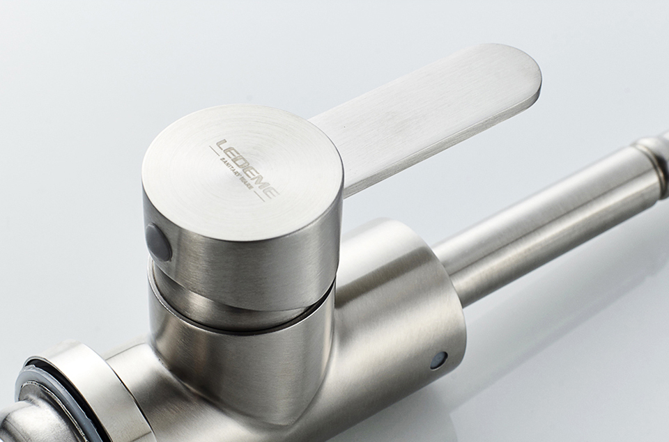 Смеситель для кухни LEDEME L74304 с гибким изливом в коллекции смесителей из нержавеющей стали предназначен для установки на кухонную мойку, конструктивно представляет из себя высокий смеситель с поворотным гибким изливом с двухфункциональным аэратором. Смешивание и подача воды происходит с помощью керамического картриджа диаметром 35 мм и металлической ручки.