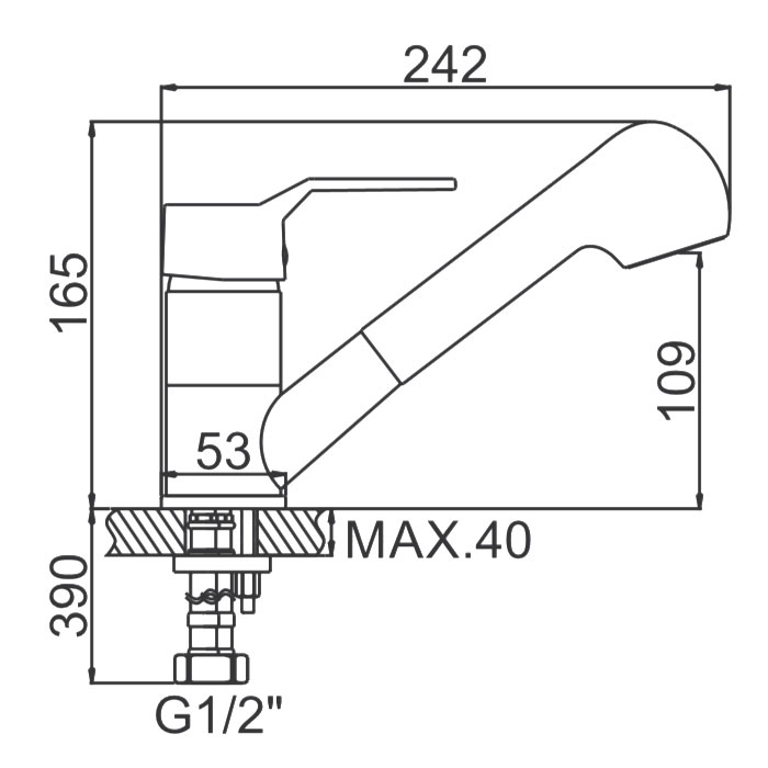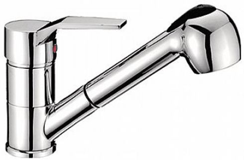 Лейка со шлангом и ее можно вытягивать из корпуса смесителя на расстояние до 1,5 метра, что создает определенные преимущества при использовании смесителя на кухне.