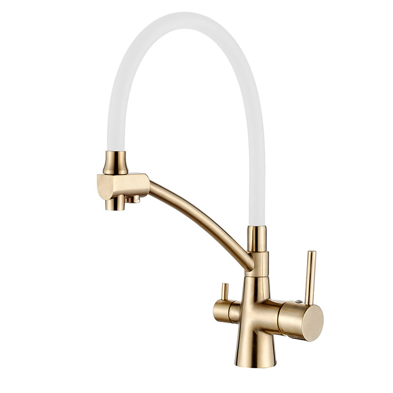 Смеситель для кухни Ledeme золотой, с выходом для питьевой воды (L4855Y-3)